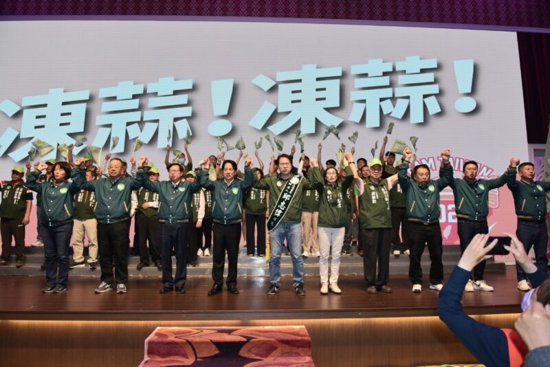 圖說:賴清德為邱志偉授旗,並盛讚邱志偉是最佳立委人選,呼籲選民集中全力,支持邱志偉連任,總統也要票投賴清德,政黨票投民進黨。