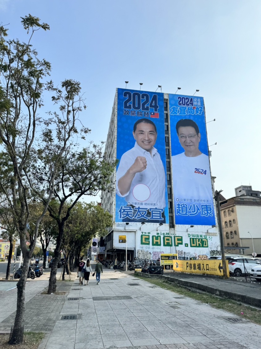 (記者謝富益報導)國民黨正副總統候選人侯友宜、趙少康,高雄首面大型看板今正式上架,該面看板佇立於中山與五福路口,人來人往的新崛江商圈車流量龐大、站在中山路往小港方向看,一眼望去遠遠就能看見兩個人的巨型看板相當吸睛。該塊看板本來由郭台銘承租懸掛總統連署廣告,郭台銘宣佈不登記後廣告悄悄撤下,令外界相當好奇將由誰掛上,答案揭曉正是國民黨正副總統候選人侯友宜、趙少康。