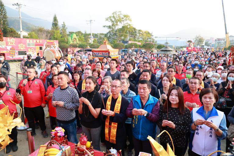 在東角大柱洪文明的帶領下,縣長許淑華、立委馬文君、副議長潘一全、縣議員吳國昌、林芳伃、民政處長林琦瑜、鎮代表會正副主席林釧儀、陳諭韋等人,及現場近千位信眾都到場恭候接駕,國姓鄉清德寺釋慧龍住持也率領師父到場誦經祈福。