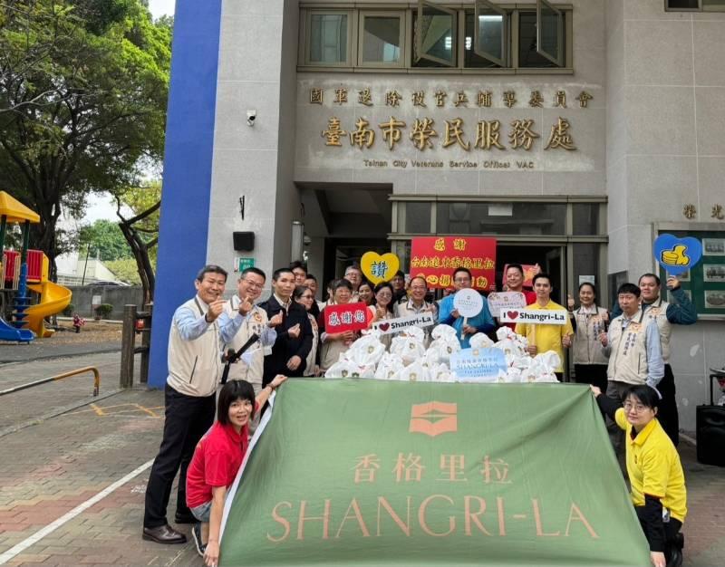 榮服處說明,香格里拉集團長年持續發展企業社會責任,並著重於以下5個關鍵領域:社區參與、環境和生物多樣性、員工發展、可持續性供應鏈及健康和安全;例如自2009年開始,台南遠東香格里拉集團加入成為家扶中心認養家庭之一,長期認養11名臺南市家扶中心孩童,連續5年舉辦「府城登高」公益競賽,共捐贈新臺幣200餘萬元予臺南家扶中心,讓家扶中心有足夠資源協助孩童正向發展;期望藉由本次食物袋捐贈活動,帶給弱勢年長榮民及遺眷温暖。