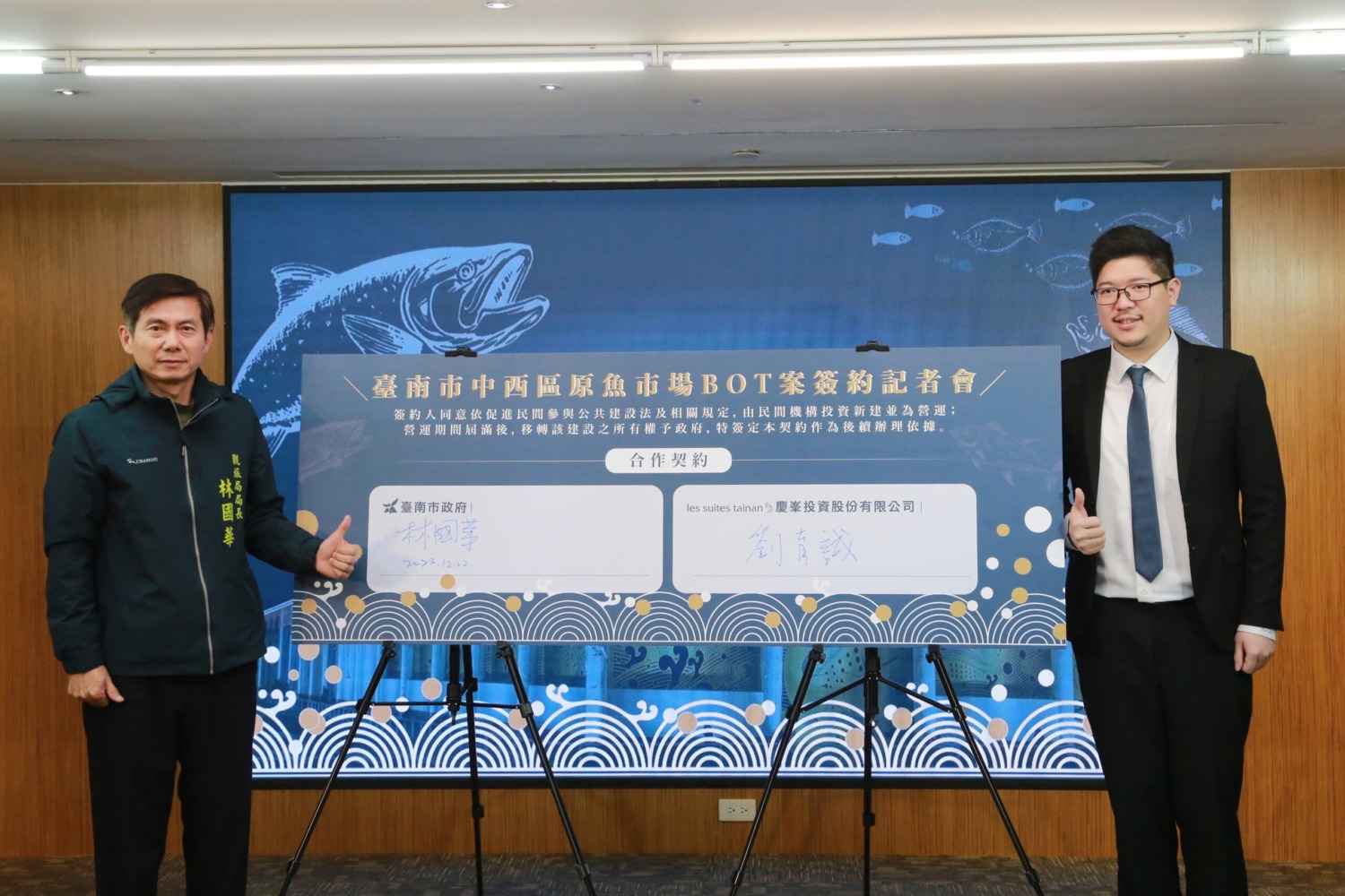 (記者吳冠賢報導)為讓中西區原魚市場風華再現,臺南市政府引進民間資源與創意辦理原魚市場旅館BOT案,今(21)日在市長黃偉哲見證下,由觀光旅遊局林國華代表市府與慶峯投資股份有限公司董事長劉育誠完成簽約,未來該公司將與曾參與河樂廣場設計的荷蘭MVRDV設計團隊合作,投資超過5.6億元規劃興建一棟地上7層,地下2層的旅館,預計於115年底前完工營運。