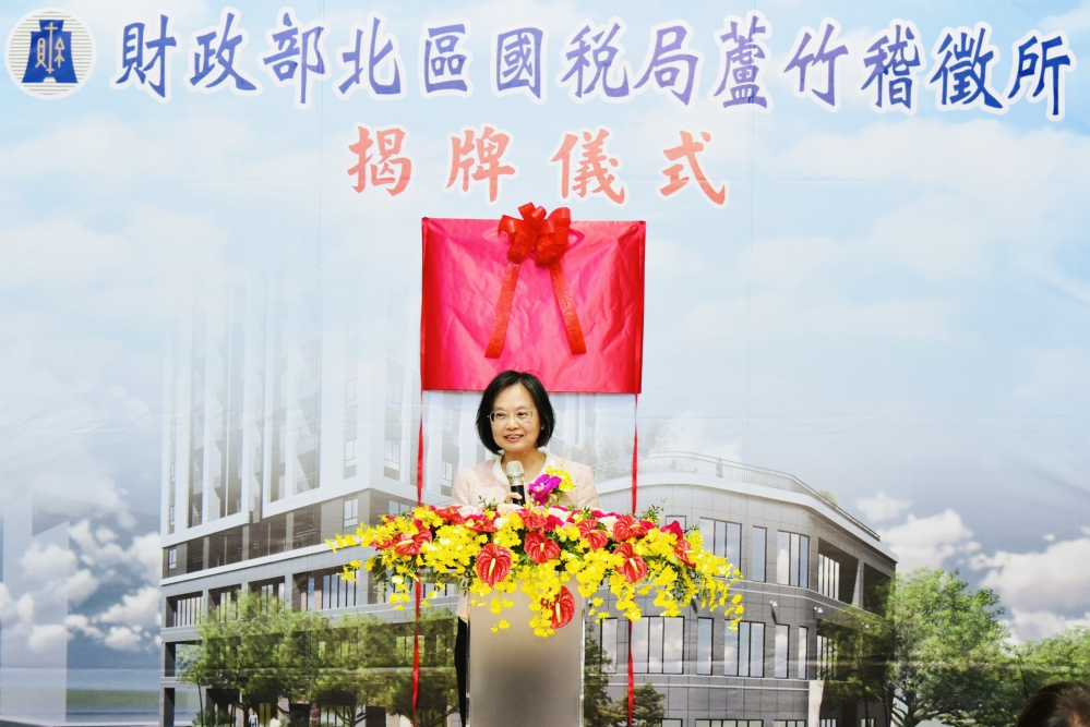 ▲財政部北區國稅局舉行蘆竹稽徵所揭牌典禮,財政部北區國稅局局長李怡慧致詞。(圖/北區國稅局提供)
