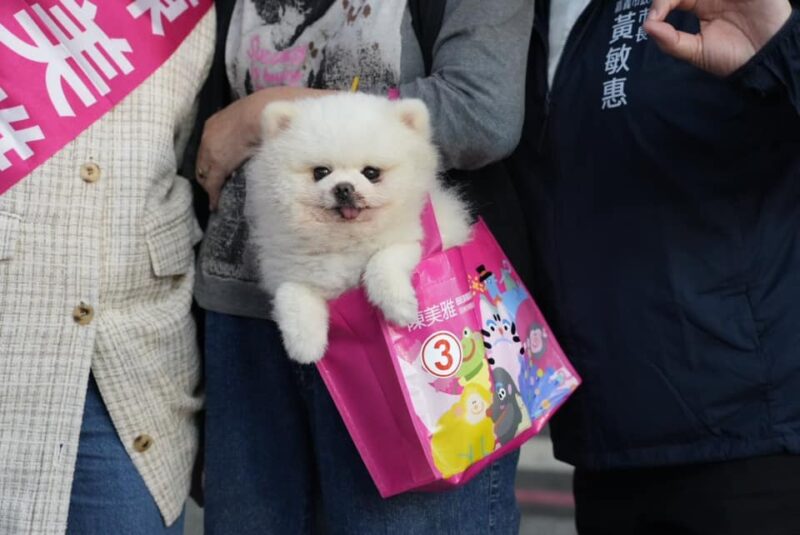 【記者李祖東/高雄報導】哇~大家太有創意了吧!昨日陳美雅與嘉義市市長黃敏惠,一起去我們的興中市場拜票,除了小朋友很喜歡把美雅小紅袋當成餐袋之外,居然也有可愛的小狗狗喜歡坐在美雅小袋裡面(萌翻啦~)!