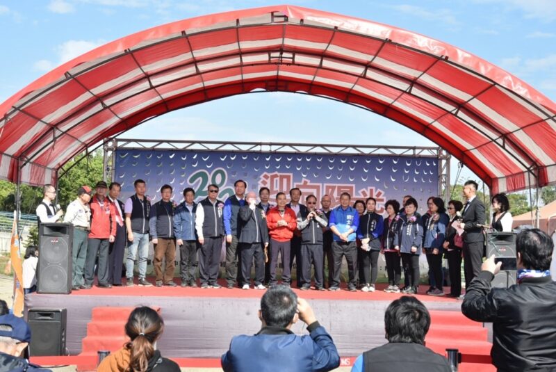 台中市民政局局長吳世緯(中持麥克風)、崇正基金會大德樞紐翁嵩慶(中左一)、宗教聯盟主席朱武獻、中華民國童軍總會秘書長蘇德祥、台中市議員劉士州、台中市議員賴義鍠、太平區區長許貴芳、各里長、……等貴賓蒞臨指導