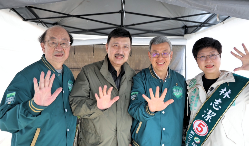 ▲行政院長陳建仁(右2)、民進黨團立院總召柯建銘(左1)、立法委員余天(左2)均站台力挺林志潔(右1)。(圖/林志潔總部提供)