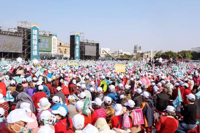 ▲民進黨正副總統候選人賴清德、蕭美琴以及新竹市立法委員候選人林志潔,今(1/6)日在竹市香山區聯合大造勢,逾萬名支持者湧進現場聲勢相當浩大。(圖/林志潔總部提供)