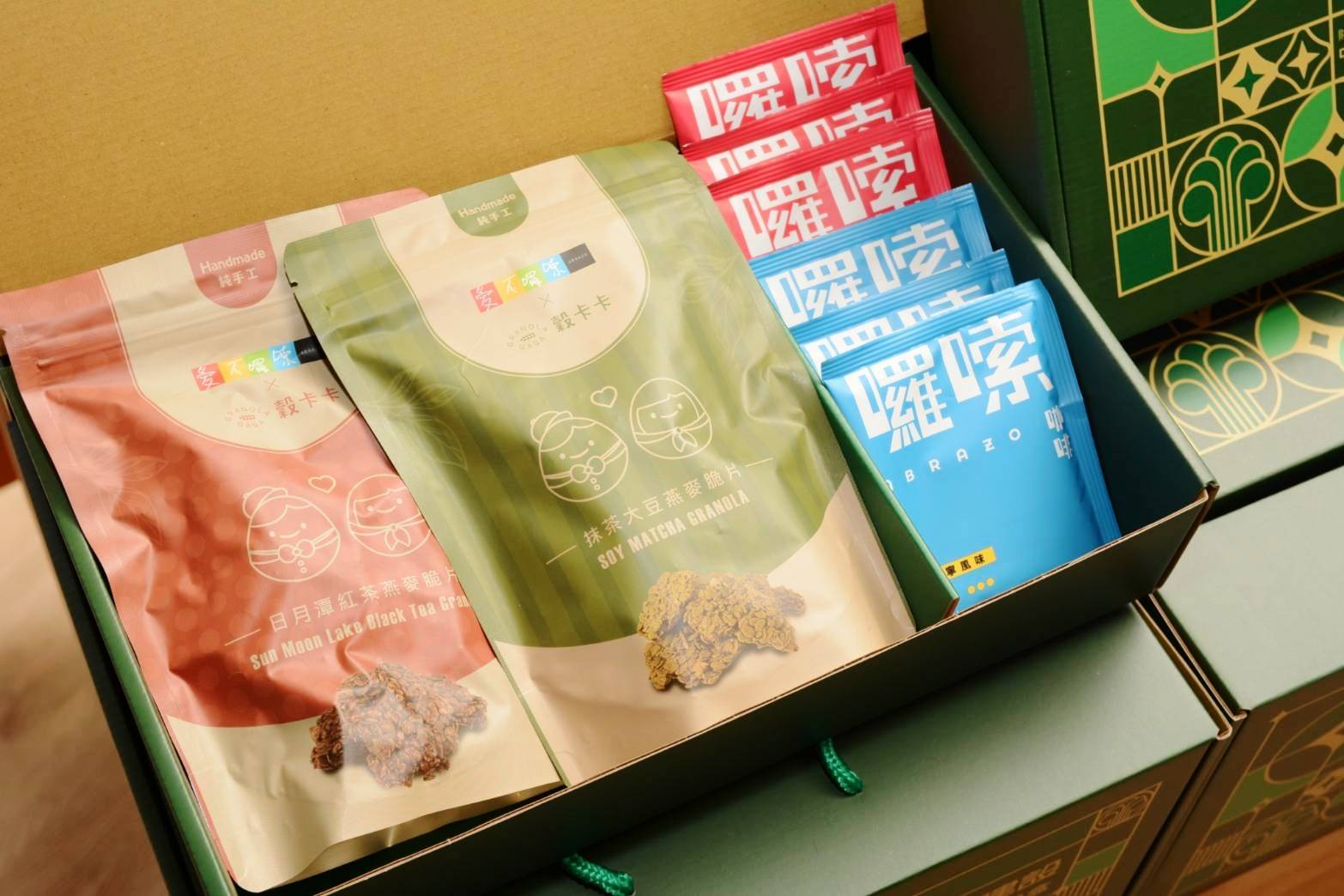 圖說:冠德所購買的年節禮盒 內涵穀物脆片和濾掛式咖啡包。
