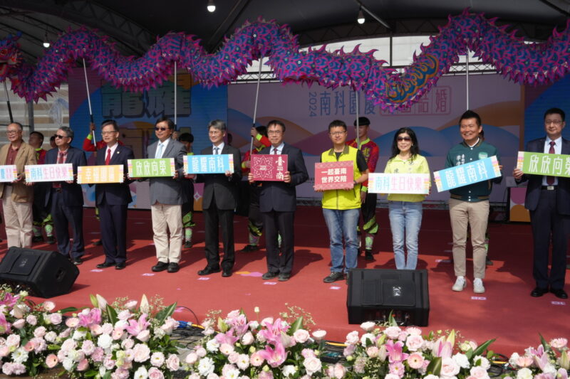 【今傳媒/記者張淑慧 報導】南科2024園慶活動於113年1月20日上午隆重登場,由臺南市黃偉哲市長、南科管理局蘇振綱局長、竹科管理局王永壯局長、群創楊柱祥總經理兼園區同業公會常務監事、園區同業公會張致遠秘書長、台積電陳仲怡廠長等嘉賓共同揭開活動序幕。除了祝賀今日完成終身大事的66對新人,更向在場來賓傳遞了充滿龍年祝福的新春祝福。