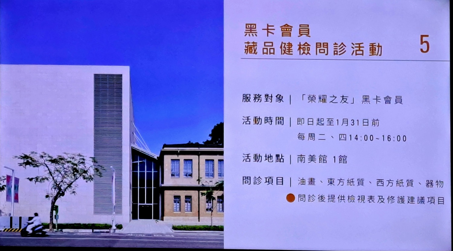 問診方式:會員來電預約後,攜帶藏品到南美館1館,由修復師親自為其診斷。