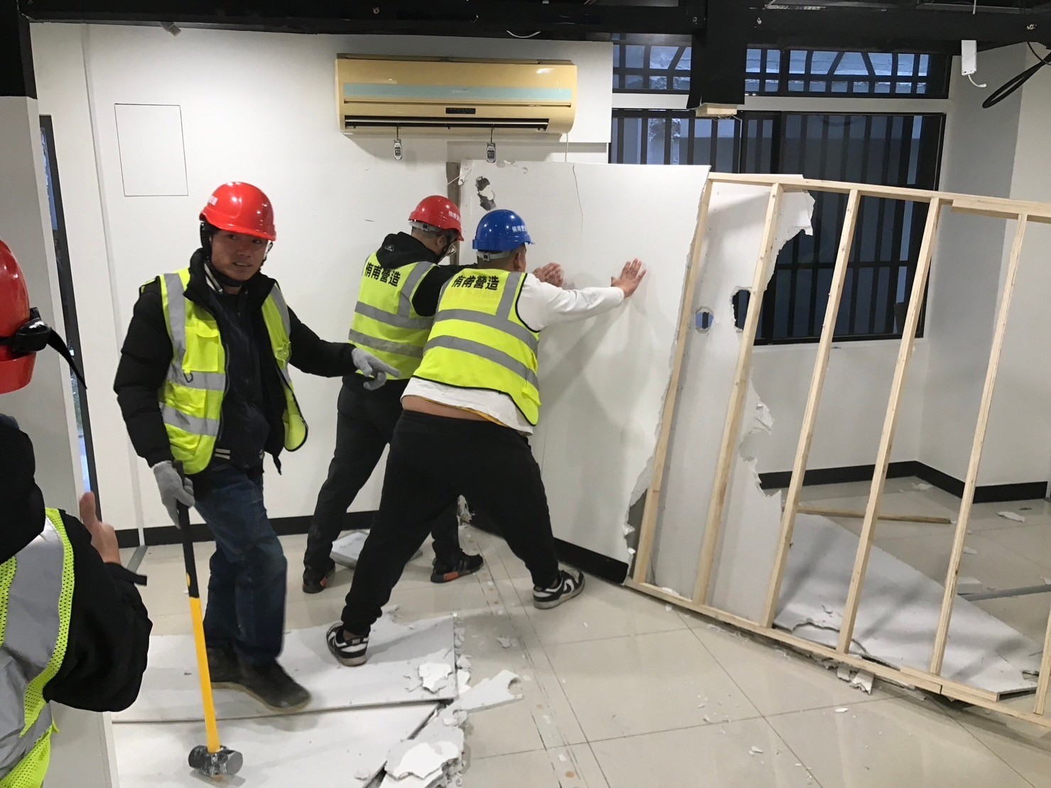 建築管理處說明,本次拆除的麻將館為民眾檢舉擾鄰案件,位於都市計畫住宅區內,營業時間至凌晨,深夜伴隨著賭客大聲喧嘩、抽菸等擾鄰的惡劣行為,附近居民忍無可忍,去年11月建管處獲報後,隨即派員前往稽查,發現有該業者違規室內裝修,且未申辦建築物用途變更,當場勒令停止使用,要求限期將建築物恢復原狀,期間建管處也未鬆懈,採取緊迫盯人不斷複查的方式,惟業者遲未改善,已踩到法令底線隨即開罰,建管處不僅開罰,今日更派員強制執行室內裝修拆除,也要讓業者明瞭市府貫徹住宅區靜鄰專案的決心。