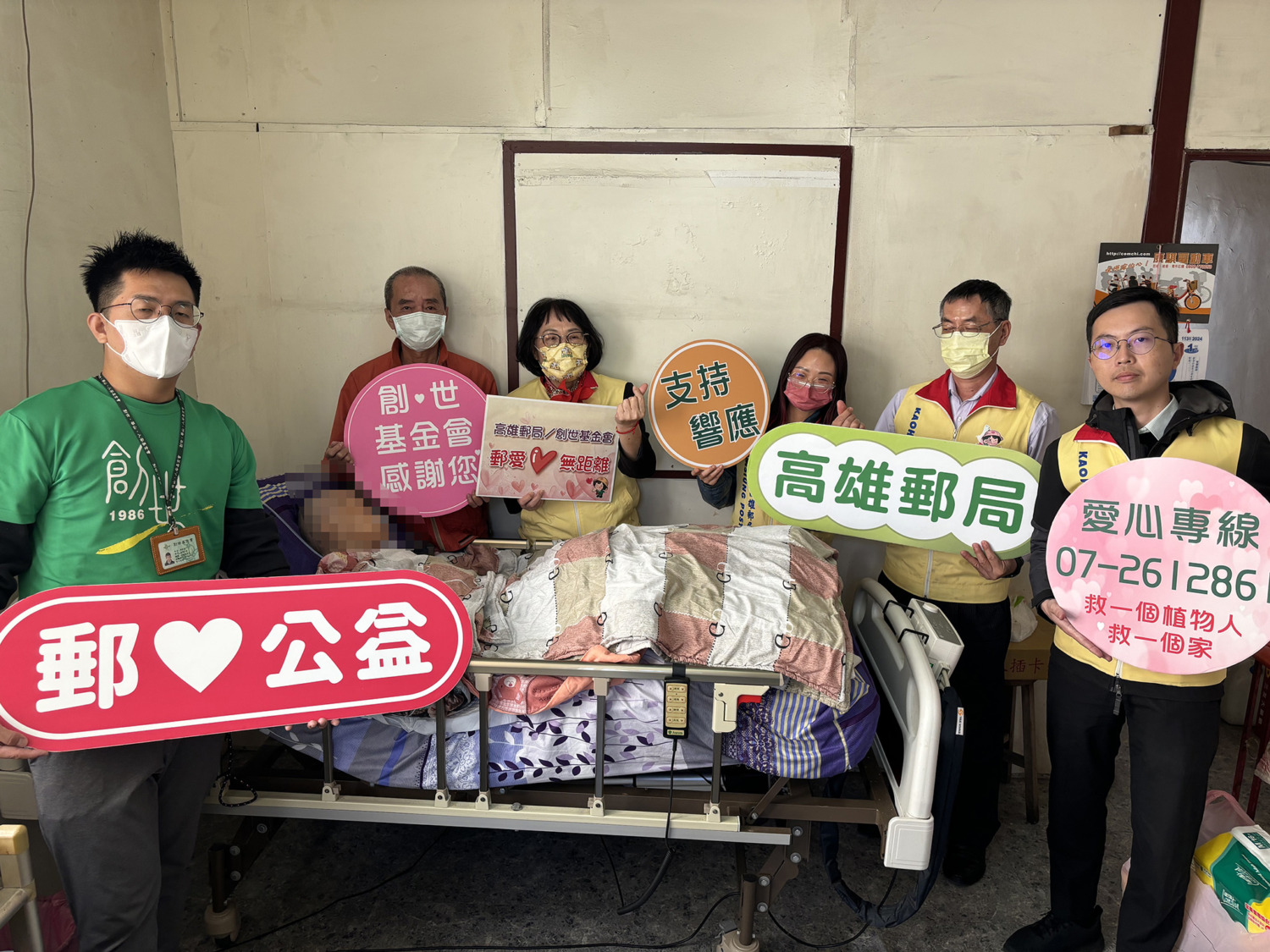 梁麗妍局長表示,高雄郵局透過實際捐贈物資給植物人家庭,挽手做公益盼能拋磚引玉,救一個植物人,等於救一個家庭,今年創世基金會「植物人常年服務暨第34屆寒士吃飽30」懇請大家給予弱勢家庭持續的關懷與援助。