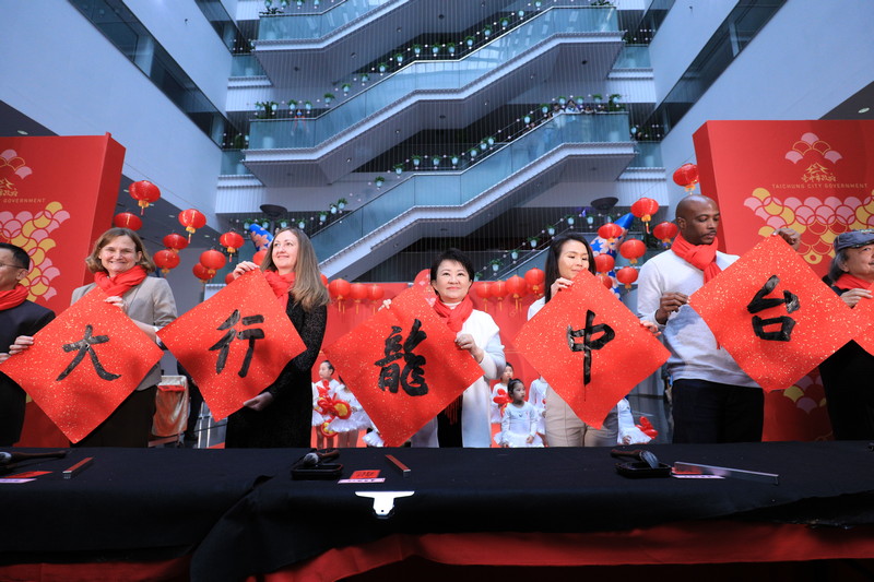 圖說:喜迎龍年!台中市政府今(24)日辦理「台中市政府113年迎新揮毫贈春聯」活動。(記者張亞痕攝)