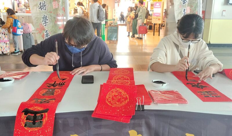 長榮大學於高鐵台南站現場揮毫 迎接2024龍年到來