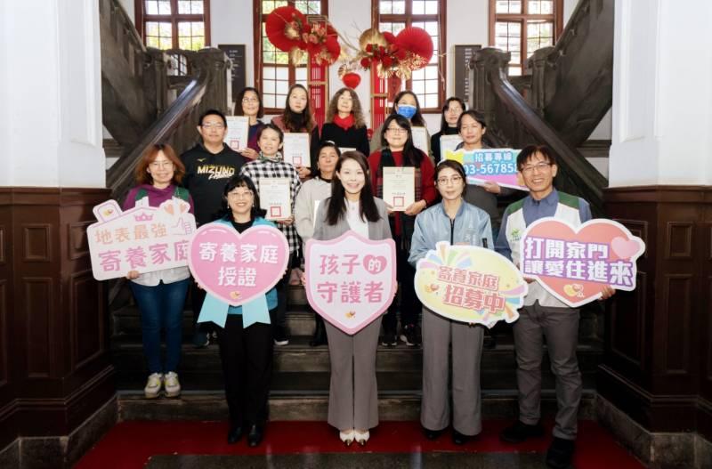 新竹市縣政府今(1/29)日共同為新進寄養家庭舉行授證儀式,由竹市長高虹安及新竹縣府社會處長陳欣怡一同授證5戶新進寄養家庭,感謝這些家庭加入寄養家庭行列,無私奉獻成為因原生家庭發生重大變故或父母不當照顧的孩子們的避風港,替代性家庭照顧處所能讓遭受家暴、虐待或無依的孩子們重新擁有家的愛與溫暖,修復孩子受傷的身心重新展開笑容。高市長表示,希望邀請更多人一起加入寄養家庭行列,共同用愛陪伴孩子平安、健康長大。
