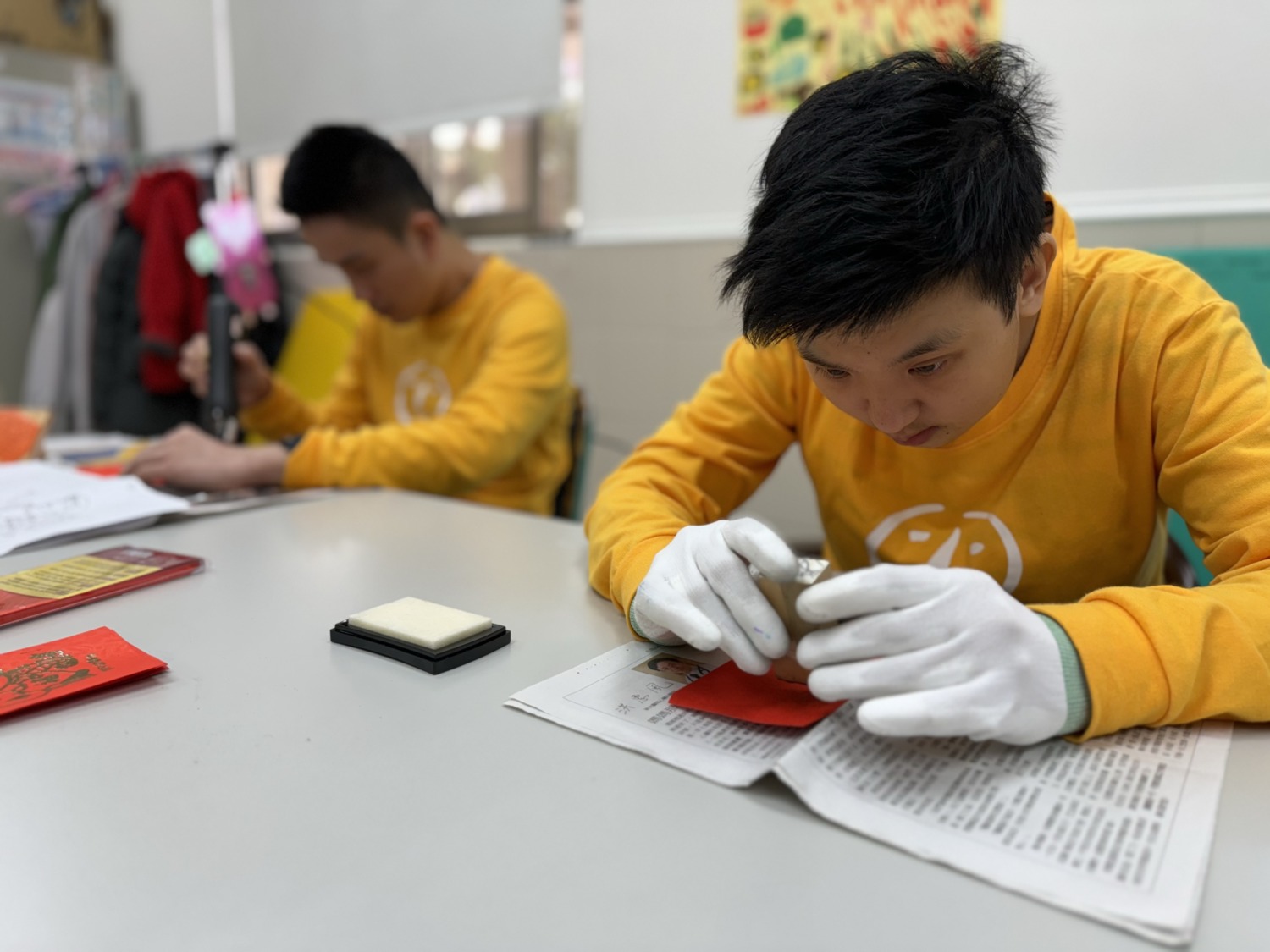 「老師,我們這個月要開始做紅包袋了嗎?」每當年節將近,憨兒們就開始著手進行「燙金紅包袋」的製作,這是高雄復興工作站獨家的作業項目,這項作業不僅讓憨兒們感到新奇,在門市販售限量紅包,也獲得客人們的熱烈回響。