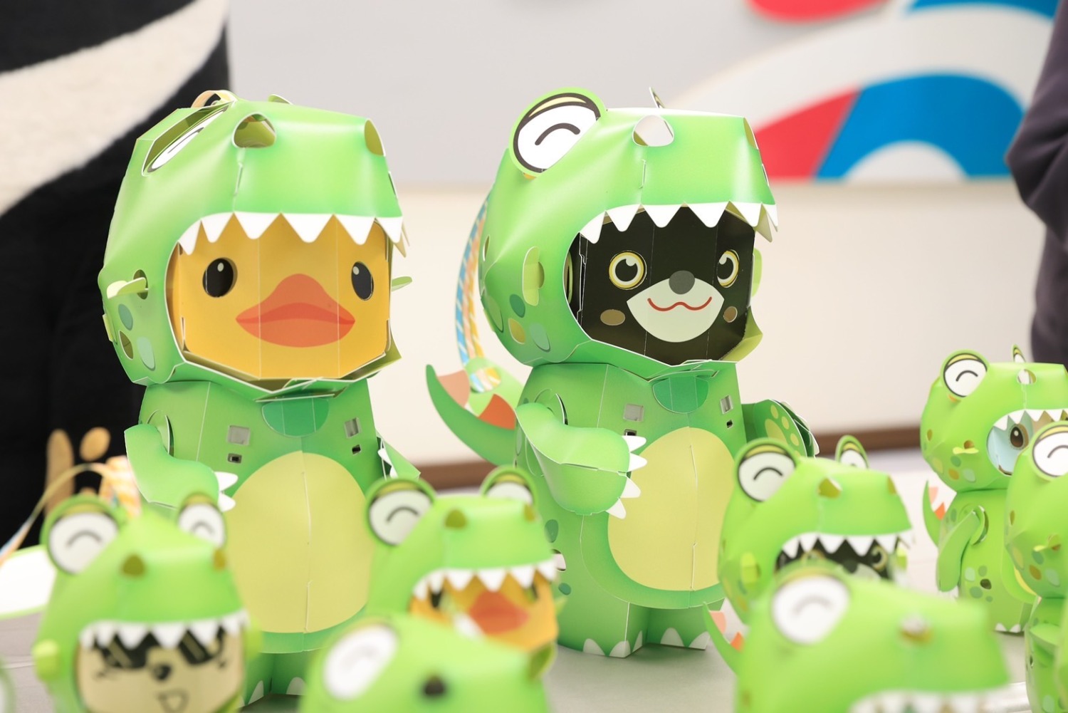 【很角色時報吳冠賢/高雄報導】高雄燈會「2024 Kaohsiung Wonderland 冬日遊樂園」1月27日至2月25日於愛河灣及16-18號碼頭(輕軌旅運中心站)登場,今(31)日由高雄市長陳其邁親自揭曉每年都引起大小朋友熱列歡迎的龍年小提燈——「小萌龍呆腦獸(DINOSAUR)」。不只突破框架、發揮想像力,用超萌可愛的恐龍造型並使用恐龍的英文Dinosaur的諧音,取名為「小萌龍呆腦獸」 ;而恐龍頭部更有「旋轉變臉」的設計,讓小朋友可以從兔年的「雄meet兔」,自行變換成今年最療癒可愛的黃色小鴨、古錐的高雄熊,或讓小朋友發揮創意自行彩繪。陳其邁更加碼宣布,高雄市國小、幼兒園及特殊學校學童,開學後都能領到1盞龍年小提燈;民眾則可在2月24、25日下午5時到16-18號碼頭現場排隊領取,一人限領2盞,數量有限,發完為止。