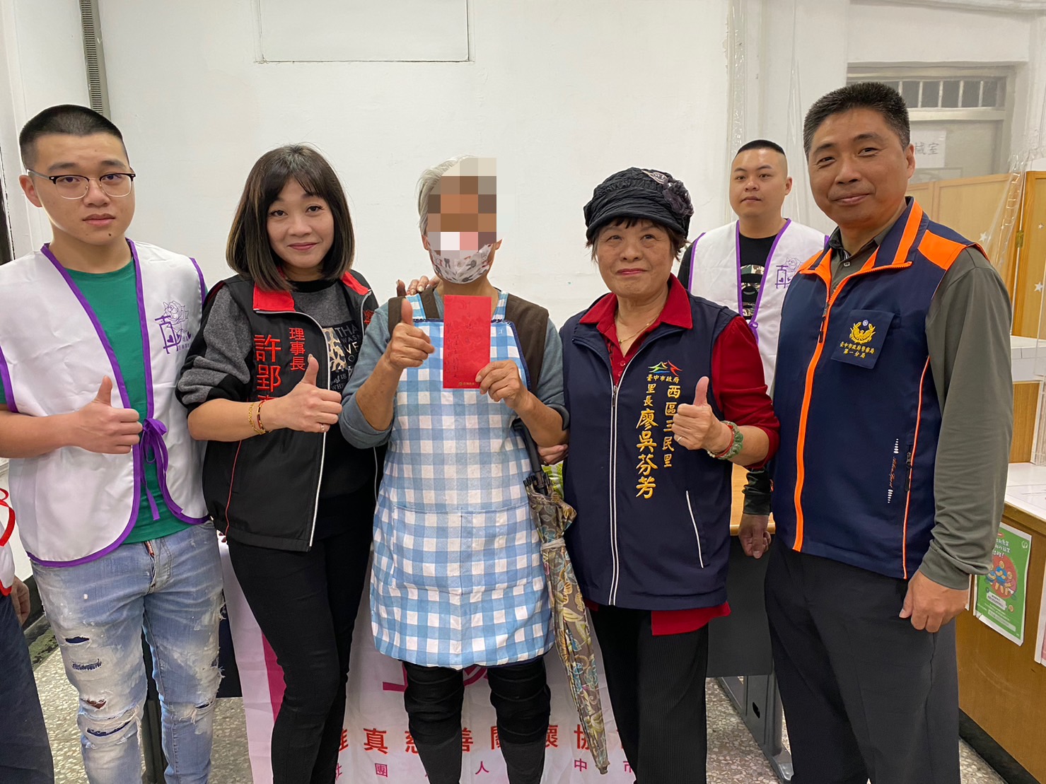 分局長鍾承志履新臺中市政府警察局第一分局後,為了讓弱勢家庭能夠感受到溫暖,號召轄內善心人士一起送愛心,率領本分局副分局長吳大勇、西區派出所所長張慧茹,邀集社團法人臺中市唯真慈善關懷協會許郢真理事長響應寒冬送暖活動,在113年農曆年來臨前夕,一同發送紅包、乾糧等慰問物資予轄內貧病弱勢家庭,希望藉由結合民間及地方守望相助力量達到拋磚引玉效果,用愛心讓社會點起溫暖的光,照亮每個角落!