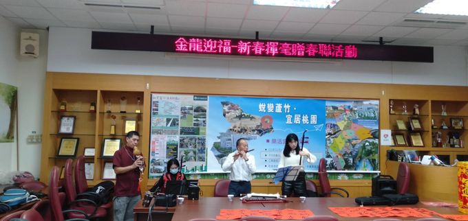 【News586/記者彭慧婉報導】新春到來,蘆竹區公所為迎接金龍祥臨,特辦理新春揮毫贈春聯、國樂賞析及在地好茶分享,特別邀請蘆竹區農會家政班書法老師和國畫老師及區公所人文課國際級書法專家在現場為大家揮毫作畫,另外也有國樂老師為鄉親演奏古典美樂,佐以在地茶農為民眾砌各類茗品,願大家都能在2024年幸福美好一整年。