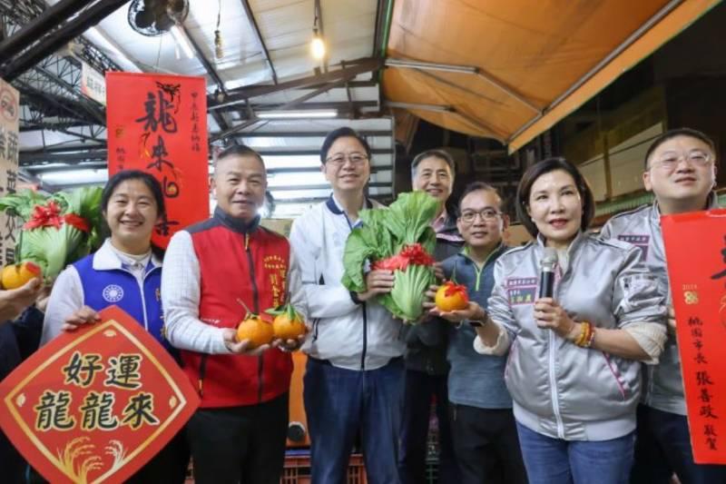 【 大成報記者袁慧心/桃園報導】桃園市長張善政今(2)日清晨分別前往桃園魚市場及果菜市場,視察年前魚貨、果菜供應情形,現場並發放春聯及福袋向所有辛苦的工作人員拜早年。張市長表示,農曆春節即將到來,魚市場及果菜市場出貨量大幅增加,感謝所有辛苦的工作人員,從年頭到年尾,每天都為桃園的市民朋友提供最新鮮的魚貨及蔬果,尤其農曆春節前更是辛苦,感謝大家的辛勞,也祝福所有承銷商與工作夥伴新年快樂、生意興隆,平安過好年。