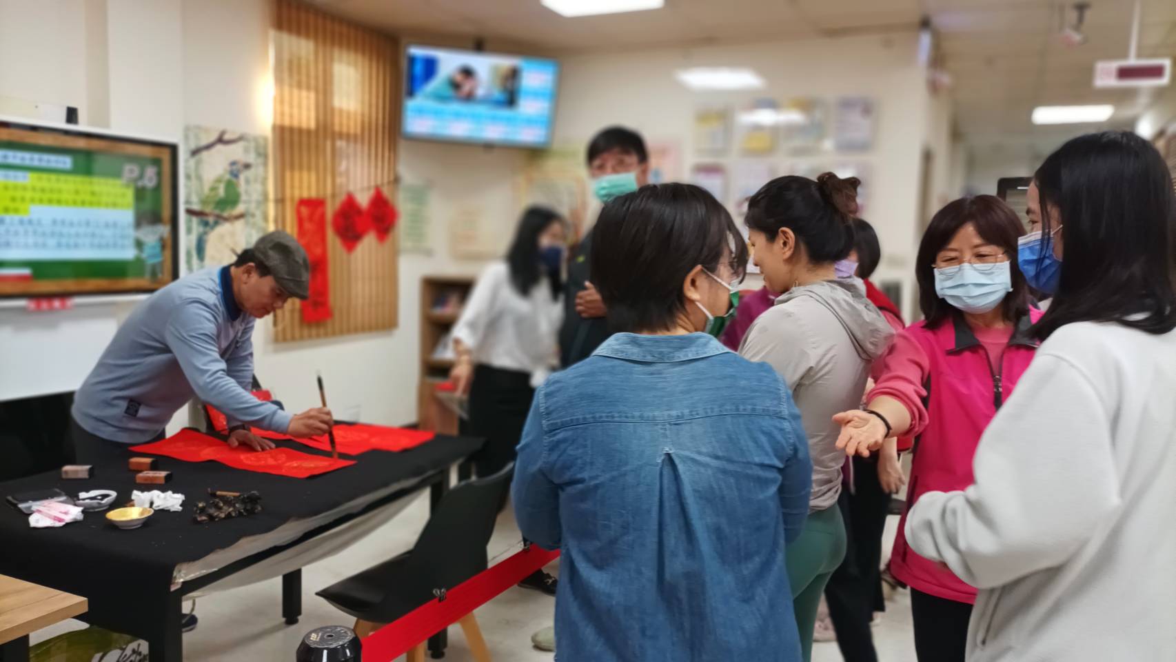 素有書法鬼才之稱書法家吳福山老師現場神筆揮毫,心思巧妙創作與龍相關圖騰及字句如「龍祝幸福、龍祝平安、龍來五吉(有錢)」,圖案生動有趣,加上對句逗趣,往年總是供不應求,很快被民眾索取一空,為求職朋友增添濃厚過年喜氣。