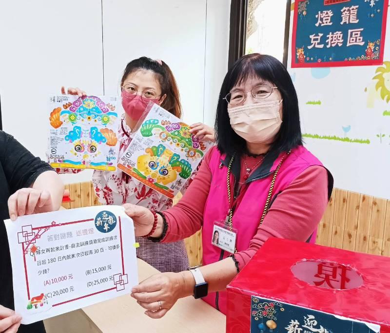 台南就業中心說明,針對就業獎勵燈謎猜猜,為使求職朋友熟知「疫後改善缺工擴大就業方案」、「婦女再就業計畫」等促進民眾就業措施,將其融入謎題內容,先提供相對應題型及答案供比對,增加答對比率,藉由趣味活動與民互動,將就業獎勵金牢牢記住,紛紛引起民眾注意及提問。