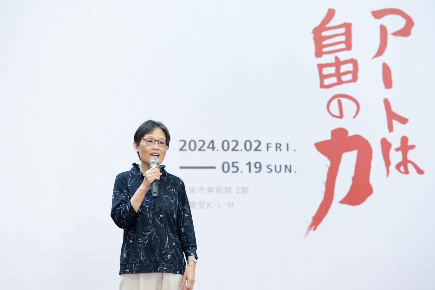 【大成報記者于郁金/臺南報導】臺南市美術館去年底推出「千載難逢—故宮國寶佇臺南」後,與中華民國智障者家長總會再度合作,以「藝術是自由的力量」為策展主題,邀請來自臺灣、日本滋賀縣與宮崎縣共計50位藝術家展出200多件個性獨具作品,作品涵蓋繪畫、陶藝、織品、書法、複合媒材等多元豐富,自由無框架創作風格,要讓每一位到來觀眾流連忘返;本次展覽標題「藝術是自由的力量」取自本展藝術家和田江美子於2020年12月23日書寫書法作品,這件作品出自於日本宮崎縣一般社團法人あわいや(AWAIYA,日文「間」)。