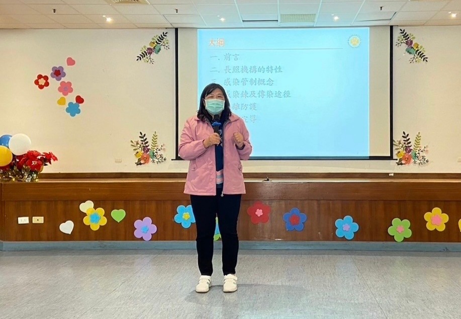 家副主任洪富珍表示,預防感染須從日常生活做起,落實個人及手部清潔及環境清消,才能把感染源杜絕在外,另常受感控教育訓練,提升員工及住民對感染防治有進一步的了解,才能有健康安全的好環境。