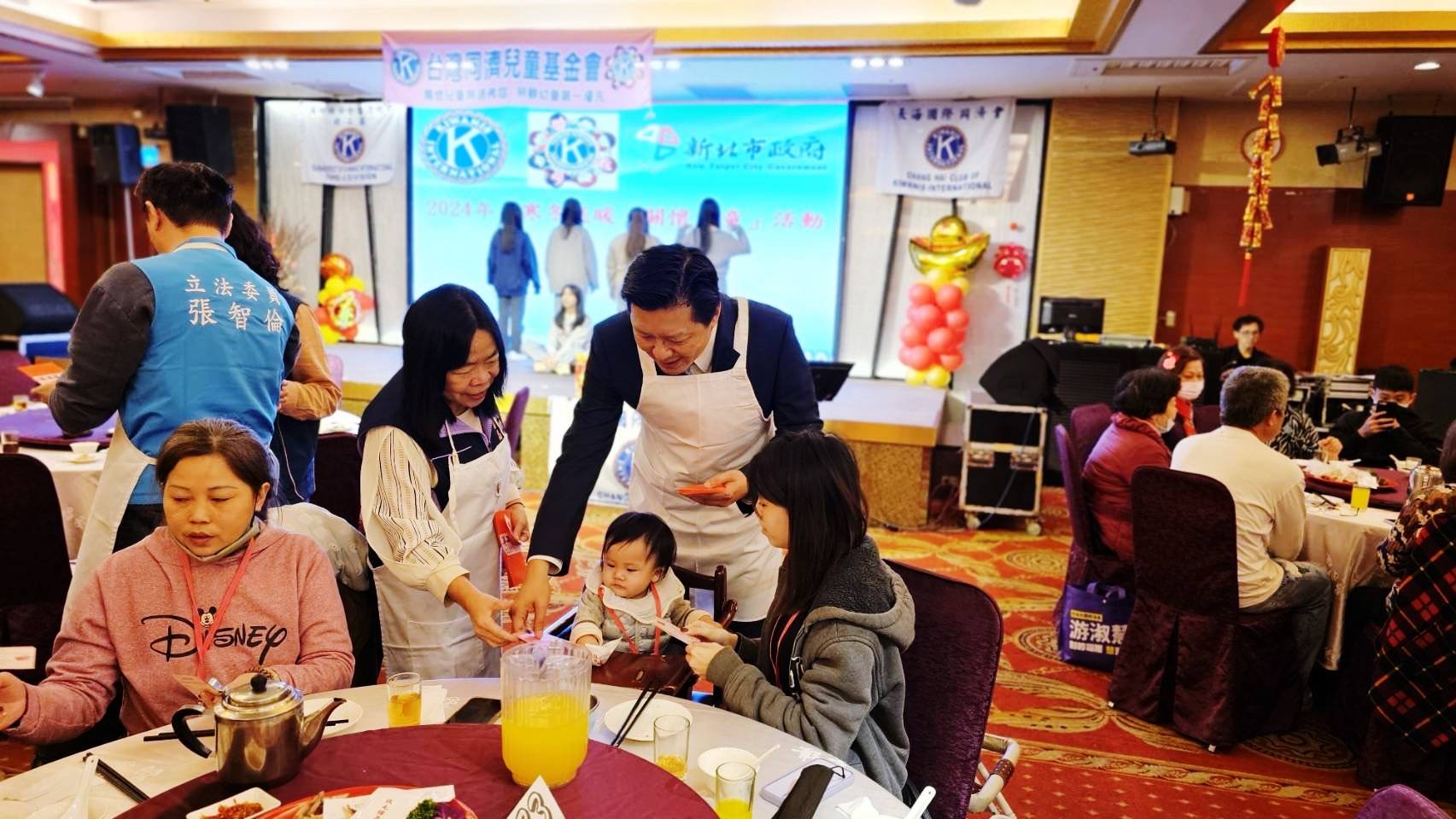 (勁報記者胡光輝/新北報導)長海國際同濟會於3日在中和狀元樓舉辦「寒冬送暖、關懷兒童」活動,席開71桌,邀請板橋、中和、永和、三重等7區近700位弱勢家庭及孩童參與圍爐活動,並且發給每人500元紅包,以及提供每戶市值1,700元的物資福袋,讓參與者在過年前都能感受到喜氣與祝福。新北市副市長朱惕之代表侯友宜市長到場感謝,場面溫馨。