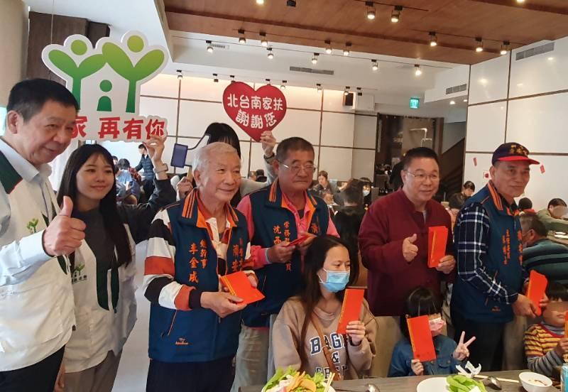 【勁報記者于郁金/臺南報導】臺南市議員蔡育輝身兼北台南家扶中心扶幼委員,每年節春前夕,都會邀請北台南家扶中心近百名弱勢親子,齊聚在新營極鮮火鍋店圍爐吃火鍋,同時發給每人500元紅包,每戶家庭更獲得香腸肉鬆禮盒、燻雞等年節好禮,活動熱鬧溫馨親子開心提前迎接新年。