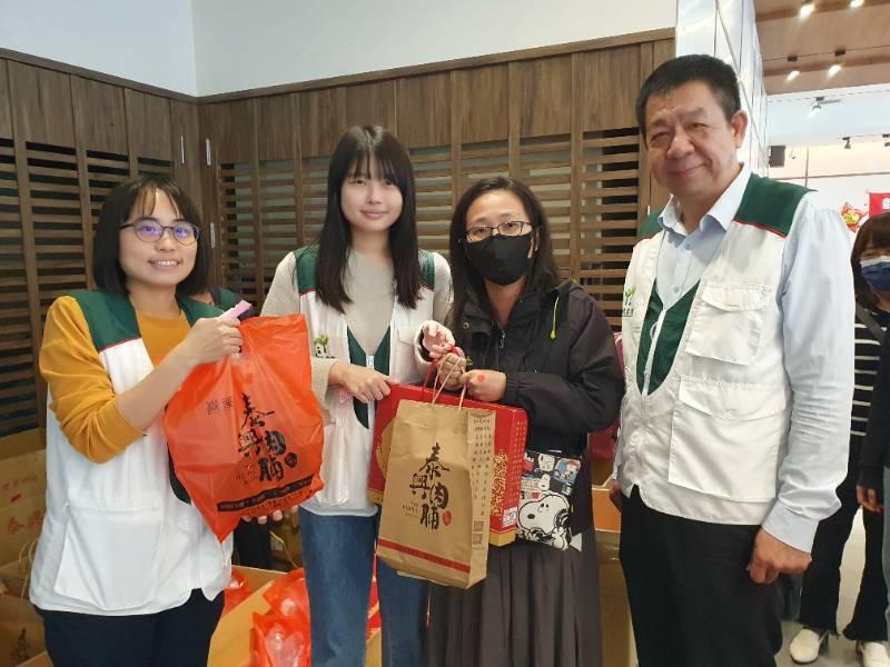 蔡育輝表示,多年來服務地方居民發現,經濟弱勢家庭逢年過節生活特別拮据經常捉襟見肘,希望透過資源連結,抛磚引玉讓更多人一起參與做愛心行動;今年結合南紡流通事業公司、臺南紡織、帝寶工業、新營濟安宮管理委員會、芳榮米廠等招待近百位受扶助親子享用火鍋,更贈送每人500元紅包,每戶香腸肉鬆禮盒、燻雞及芳榮米等年節好禮,讓大人小孩提前開心迎接新年。