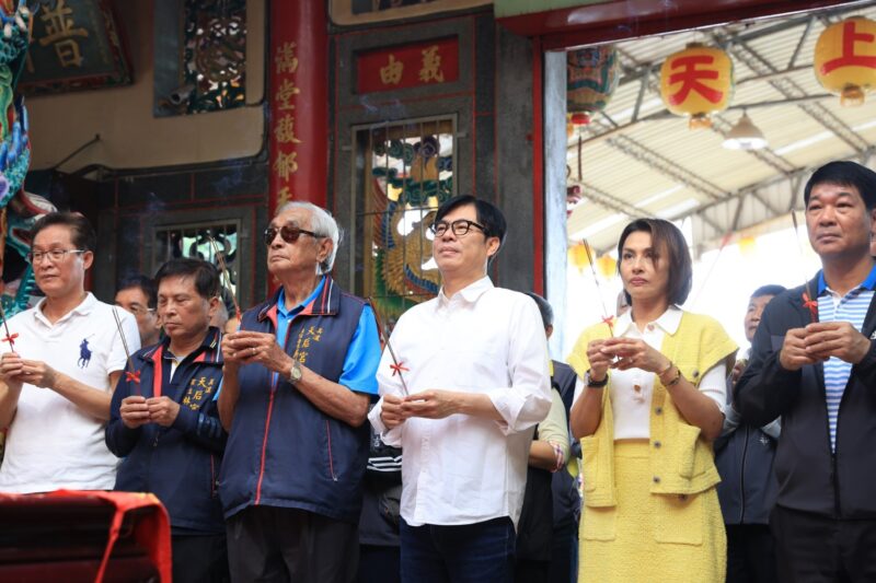 陳其邁隨後前往美濃天后宮參香祈福,並發送龍年小紅包給客家鄉親。他致詞時再次提及在地民代爭取經費建設美濃,促進當地觀光發展及改善淹水,要向他們表達感謝。祝福客家鄉親們在未來的一年裡,都能幸福美滿、長長久久。