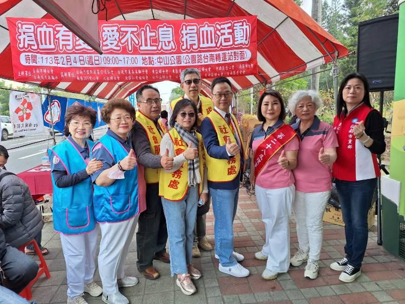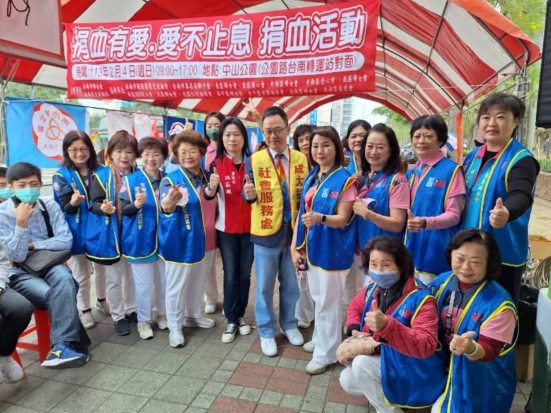 此次舉辦「捐血有愛 愛不止息」捐血公益活動,主辦單位社團法人台南市婦女會、台南成大扶輪社;出席貴賓及協辦單位代表包括:中國國民黨台南市黨部書記長洪菽珮、台南市國際蘭馨交流協會會長童小芸、蔡啟隆(下屆社長當選人)、台南市真善美獅子會劉雅萍會長、東區婦女會曾培雅理事長、東區連心會黃秀麗會長、中西區婦女會施素華理事長、中西區慈心會蔡文華會長、南區婦女會蔡淑惠理事長、南區365愛心會郭麗鳳會長、北 區婦女會 柯貝玓理事長、北區仁愛姐妹會鄭惠分會長、安平區婦女會林燕煌理事長、安平區古堡姐妹會 歐英滿會長、安南區婦女會洪春美理事長、安南區慈愛會陳瑜緁會長等,共襄盛舉,力挺捐血公益活動。