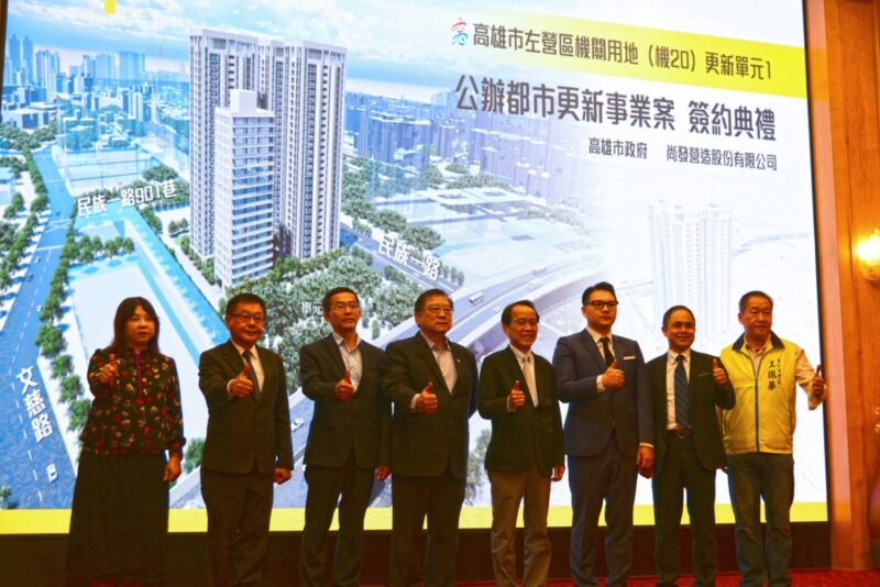 [今傳媒/記者李祖東報導]高雄市政府都市發展局今(5)日舉辦左營大中民族「20號機關用地」公辦都市更新案單元1簽約儀式,由高雄市副市長林欽榮與招商得標廠商尚發營造公司代表鍾育霖執行長共同簽署,本案民間投資金額達53.64億元,完工後將提供優質生活環境與休憩空間。