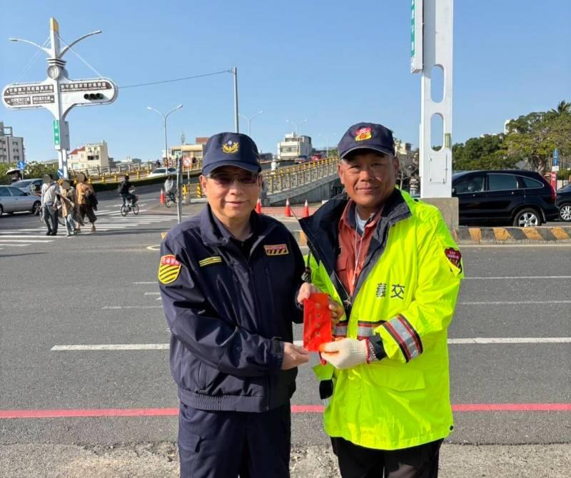 【勁報記者于郁金/臺南報導】因應春節連假期間返鄉及出遊車流人潮,更逢「月津港燈節」、「2024臺南燈會」及「臺南400」等亮點活動,臺南市政府警察局交通警察大隊針對轄內名勝古蹟廟宇等交通動線,持續規劃投入警力及義交即時疏導工作,為感謝堅守崗位的協勤義交辛勞付出,交通警察大隊長施衣峯特別親自前往各交通崗位慰問義交夥伴,並致贈慰問金,關懷協勤民力執勤辛勞。