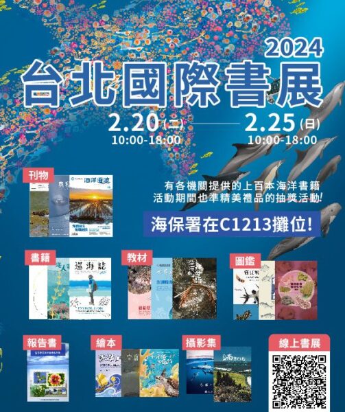 【今傳媒/記者李祖東報導】 2024台北國際書展將於2月20至25日在台北世貿中心展覽一館舉行,藝術總監李政瀚以「閱讀造浪」作為書展主視覺,設計層次豐富、流動轉變的文化海洋意象。海洋委員會海洋保育署也邀您親臨「C1213」展區,感受逾130本「海洋書海」的奧秘之美,同時關注海保署臉書並參加抽獎活動(https://www.facebook.com/ocaoactaiwan),還能「抽好禮」。有興趣收藏海保署出版品者,除可於書展現場購買外,亦可至2024台北國際書展線上書展「海保署專區」連結選購(https://tibeonline.tw/show-publisher/海洋委員會海洋保育署/)。