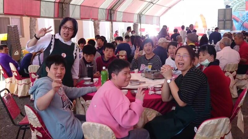 ▲彰化企業經營研究協會新春團拜設宴邀請與招待喜樂師生,共享新春團圓氛圍。(喜樂保育院提供)