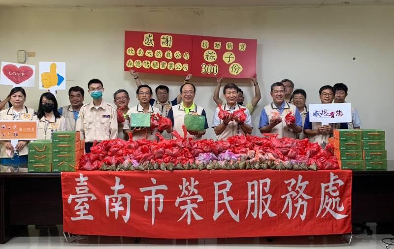 【勁報記者于郁金/臺南報導】端午節將至,為讓弱勢榮民及遺眷能夠感受到節日溫馨與關懷,臺南市榮民服務處特別鏈結民間企業發揮大愛,善盡企業社會責任,特於端節前,由欣南天然氣公司總經理劉建東代表董事長朱文輝、森億櫥櫃公司董事長張蘭,捐助臺南市榮服處採購端節粽品,包括採購饅頭姐姐好運肉粽、喜憨兒基金會傳香肉粽等應景食品,將由榮服處服務團隊發送給轄區弱勢清寒、單身高齡及遺孤家庭,讓他們在傳統佳節感受到來自社會關懷與支持。