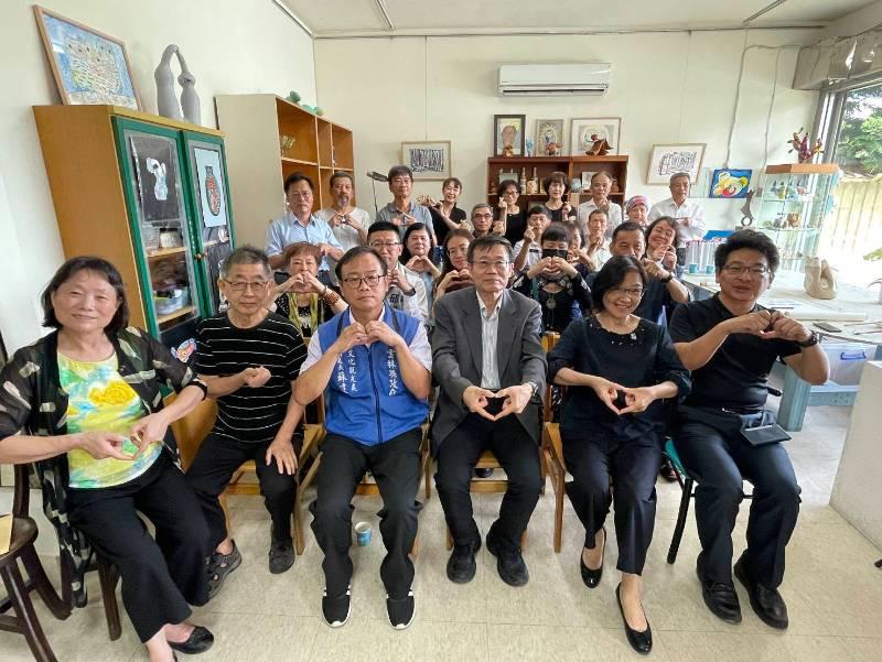 ▲「雕天塑地話人間─李龍泉老師藝術追思研討會」活動現場,竹美館長葉于正(前排右1)和藝術家李龍泉老師夫人鍾琴女士(前排右2)等出席嘉賓合影。(圖/竹美館提供)