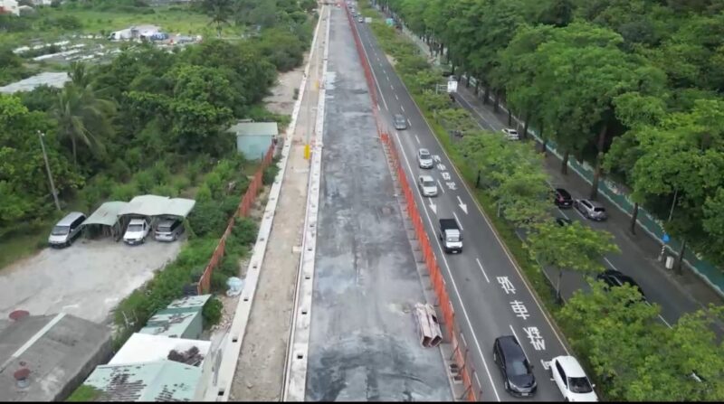 新工處表示,西側工程目前進度 77%,原排定西側拓寬車道的路面鋪設及標線工項因颱風攪局,將順延至下周進行施工以維護人員安全及施工品質。其中海功東路至明潭路段的西側工程於 113 年 8 月中旬先行完成拓寬段通車,左營大路至海功東路則於113年8月底完成,完成拓寬後將撤除本工程圍籬,並接續進行之中央分隔島及東側工程,施工期間將採半半施工維持 6 車道通行,以降低對交通影響,全段則力拚 114 年中完成。
