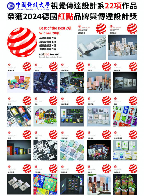 2024德國紅點設計大獎競賽中,中國科技大學視覺傳達設計系由許允聖主任引領指導老師群:陳建勳、李政達、高偉峯、黃榮順、王曉今、張盛權、魏碩廷、施盈廷等老師,共同指導學生的成果創下歷史新高,榮獲兩項「Best of the Best」大獎及20項「Winner」獎,充分顯示出其學生和教師的創意與實力,歷年紅點設計累計獲獎數一舉突破百項,展示中國科大視傳系在設計領域的卓越成就!