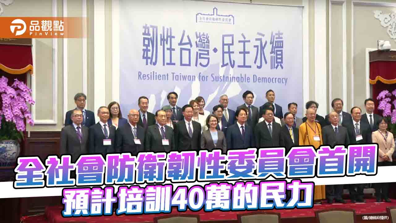 防衛韌性委員會歷經4小時落幕,會中確定將透過訓練和演練,全台培養40萬民力投入全社會防衛,今年12月進行桌上兵推,明年6月銜接漢光演習,進行全面性的前導演練。賴清德總統要求政府部門必須用更開放的態度、引進民間人才資源,「我們守護自己、守護國家的決心,不會動搖」。