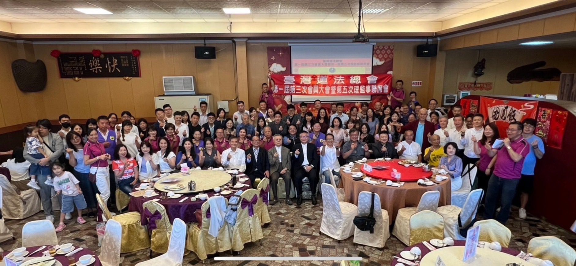 台灣道法總會今天在桃園舉行第一屆第三次會員大會暨第一屆第五次理監事聯席會,百餘名會員參加,場面熱鬧。桃園巿長張善政致贈花蘭祝賀、立委邱若華、市議員謝美英、桃園市民政局主任秘書蔡世志、文化大學教授林忠山、各界成功企業家及學者、地方仕紳與會。