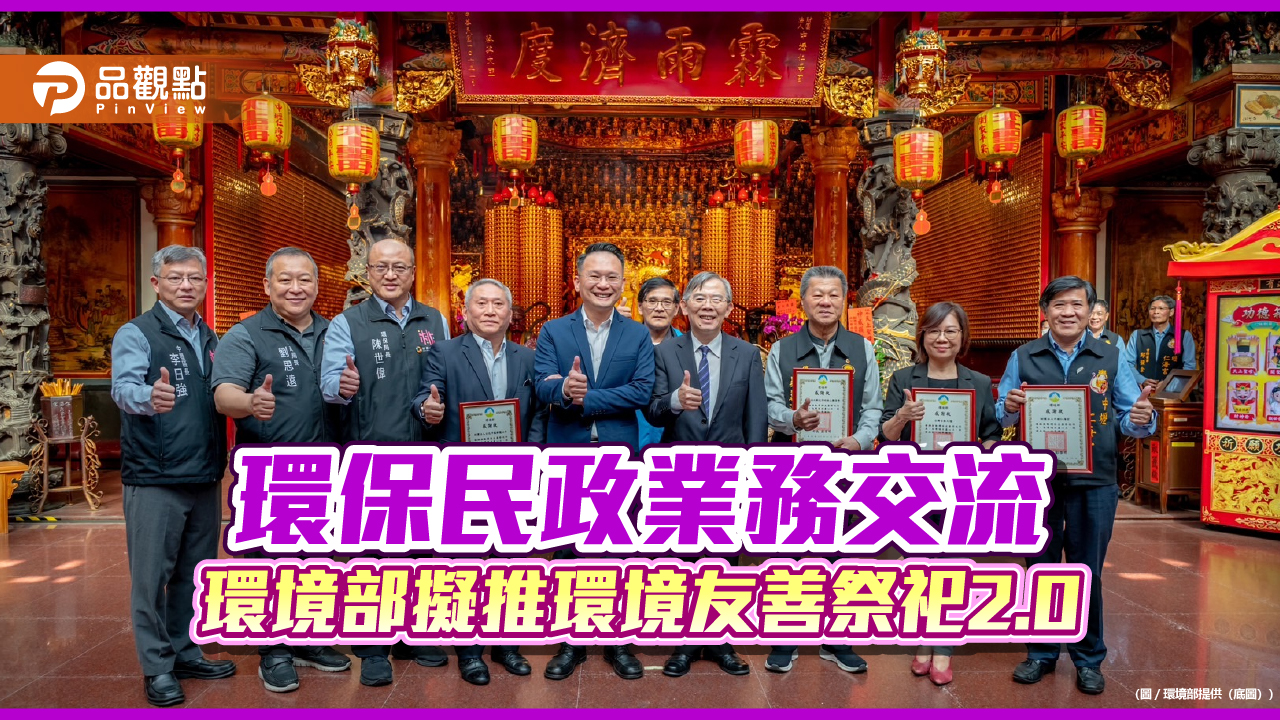 為兼顧宗教信仰及環境品質,環境部大氣環境司今(25)日辦理「環保祭祀業務推廣交流暨座談會」,邀請桃園市副市長蘇俊賓,並召集各地方政府環保及民政單位同仁,參訪倡行不燒紙錢及一爐一炷香的桃園中壢仁海宮,更安排內政部宗教及禮儀司、仁海宮、台灣首廟天壇、竹林山觀音寺代表出席座談會,提供執行環保祭祀成功經驗,並提出包含設施節能、活動減污、資源循環、環境教育等面向的「環境友善祭祀2.0」政策,達到「保平安、顧空污」的雙贏局面。