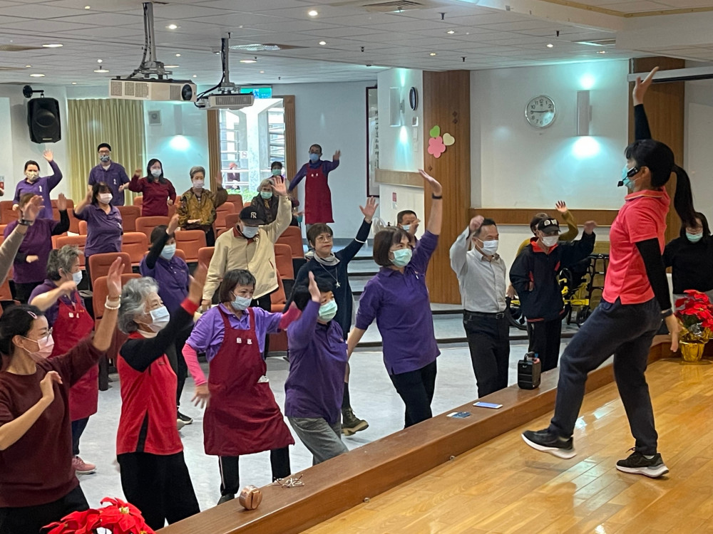 活動內容包含輕鬆有氧舞蹈、呼吸調整練習與伸展運動等,針對長照機構職員工的工作特性,活動設計考慮到長時間站立與勞累,特別加入針對性伸展和放鬆技巧,幫助職員舒緩身體上緊張與疲勞,並有效促進血液循環和增強體力。