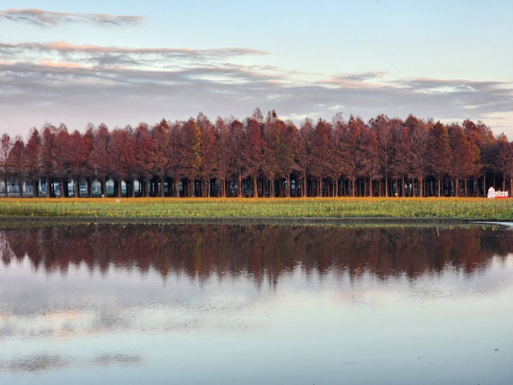 從過年前就開始六甲落羽松季,今年在幾波寒流低溫催化及春雨灌溉下,不僅落羽松整體色彩更加嫣紅,還有機會拍到水面倒影,附近農田種植黃波斯菊正值盛開時節,兩者與藍天白雲共同營造美麗場景;順便也可以走訪柳營德元埤荷蘭村、乳牛的家等景點,享受寧靜優閒時光。