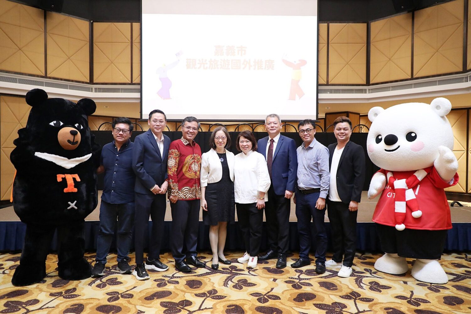 來「嘉」旅遊成為風靡海內外遊客的新選擇,為了讓更多人了解嘉義市這座坐落在北回歸線上的城市魅力,嘉義市市長黃敏惠今(4)日率領市府團隊,攜手嘉邑城隍廟、觀光、旅宿業及產業界代表,合計近百人,共同於馬來西亞吉隆坡舉辦嘉義市觀光旅遊推廣說明會,更首次集結兩大人氣吉祥物──嘉義市的大白熊、交通部觀光署的喔熊(OhBear)共同現身活動現場,以「熊熊出擊」之姿吸引馬來西亞旅遊業者目光,展現嘉義市觀光文化魅力與城市特色。