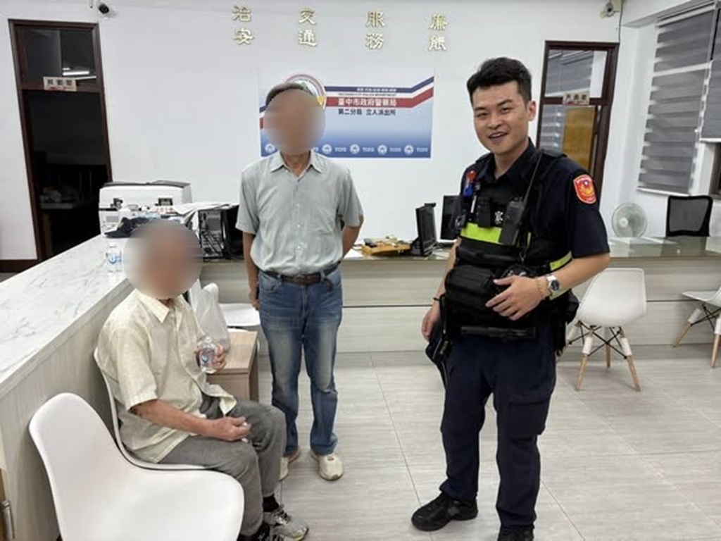 中市警二分局立人派出所警員廖建智、林家禾接獲通報後迅速趕抵現場。老翁身穿整齊,手中仍緊握著繳費單與零錢,但對於自己的住處與身份卻無法清楚說明,僅能片段表達疑似迷路。警方初步研判其可能患有失智症,並查證其行走方向已偏離住家,甚至朝反方向走了將近4小時,最後體力不支才坐下休息。