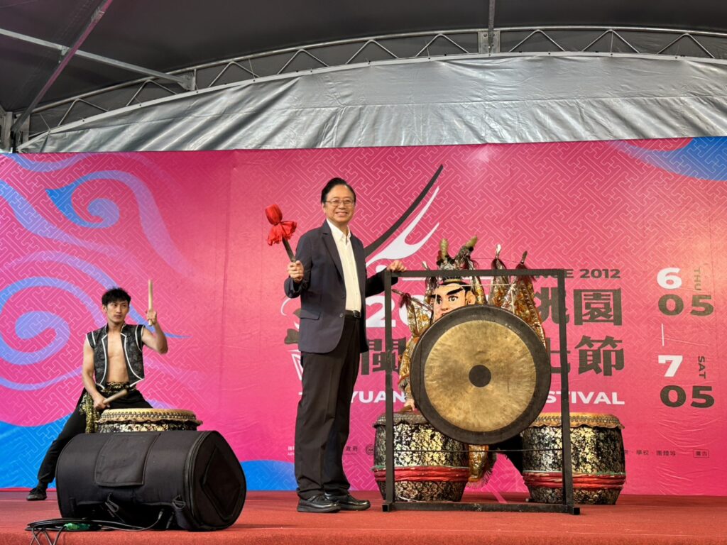 張善政市長出席「2025桃園閩南文化節」記者會,親自敲鑼啟動,為五大主題活動揭開序幕。(圖/桃園市政府文化局提供)