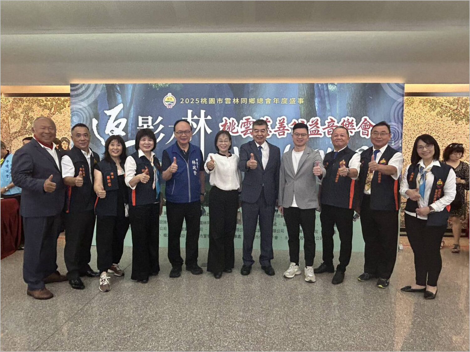 桃園市雲林同鄉總會於今年隆重舉辦《返影入林 II》慈善公益音樂會,由總會長廖學雄秉持歷屆理事長的服務精神,號召鄉親共同參與,以「共居、共融、共創」為活動核心理念,透過藝術表演匯聚關懷,實踐「送愛入里」,讓公益真正走入生活。