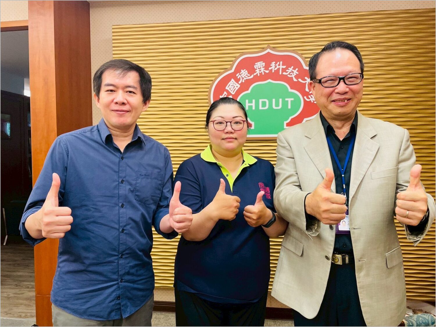 圖:宏國德霖科大趙純玉同學八年取得三個學士學位,今年考取研究所,好學精神足為青年表率。圖左起:林世偉導師、趙純玉同學、段葉芳校長。
